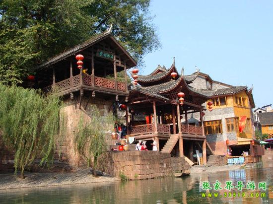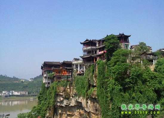 芙蓉鎮(zhèn)不僅是一個(gè)具有悠久歷史的千年古鎮(zhèn),也是融自然景色與古樸的民族風(fēng)情為一體的旅游勝地,又是猛洞河風(fēng)景區(qū)的門(mén)戶(hù)、一個(gè)尋幽訪(fǎng)古的最佳景點(diǎn)。四周是青山綠水,鎮(zhèn)區(qū)內(nèi)是曲折幽深的大街小巷,臨水依依的土家吊腳木樓以及青石板鋪就的五里長(zhǎng)街,處處透析著淳厚古樸的土家族民風(fēng)民俗,讓游人至此贊不絕口,留連忘返。胡績(jī)偉先生游覽猛洞河和王村以后作詞贊道:“武陵山秀水幽幽,三峽落溪州。懸崖壁峭綠油油,悠悠蕩華舟。烹鮮魚(yú),戲靈猴,龍洞神仙游,芙蓉古鎮(zhèn)吊腳樓,土家情意稠。”