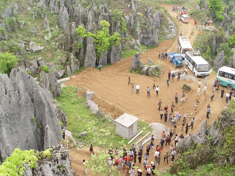登上洛塔,只見連山綿谷,萬石如林,一塊塊青灰色的大石頭競(jìng)高競(jìng)秀,競(jìng)美競(jìng)奇,綿亙縱橫,層疊交錯(cuò),造型奇特,塔狀、蓮臺(tái)狀、羅漢狀、錐狀、刀狀、箭簇狀、帷幕狀等林立薈萃,像一個(gè)個(gè)神奇的迷宮,組成洛塔地質(zhì)公園的旖旎景觀。有的玲瓏斫剔,若女繡工鐫;有的嶙峋怪異,如鬼斧神鑿;有的崢嶸巉峻,似水墨丹青;有的嵯峨兀立,藤蔓纏繞,更像一株株挺拔的古樹。高的、矮的、大的,細(xì)的。粗、瘦、皺、滑,各具特色,如人之面目相具而無一相似者,在綠樹紅花間亮麗起一道道迷人的風(fēng)景。洛塔石林遍及整個(gè)山界,較集中的有楠竹水坪石林、梭洛趙家灣石林、八仙洞石林及公路沿線的銀河塔石林,僅水坪一帶的石林面積就達(dá)1000多畝。無論其規(guī)模面積,造型及組合情況,洛塔石林都可與云南石林媲美。