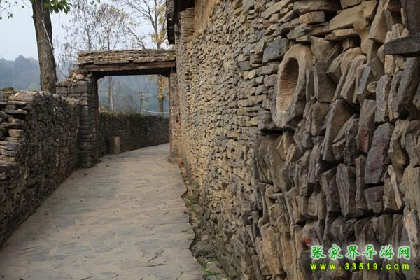 苗王城是西南地區(qū)苗族留存至今唯一一座保存得較好的集政治、經(jīng)濟、文化、軍事和建筑為一體的古苗寨。它占地面積10 平方公里,依據(jù)山形水勢,前后筑有六個古兵寨。古寨內(nèi)有11 條巷道,巷道內(nèi)有 11 道寨門,巷道以石墻作為屏障并跟各家的院墻連成一體, 而且有專門迷惑敵人的“直角巷道”,