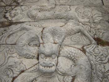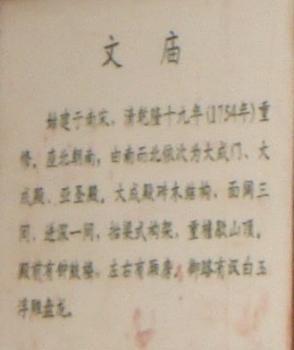 廟前面有學(xué)宮坪,亦名學(xué)坪,坪南端有大明壁。廟宇紅墻黃瓦,氣勢(shì)宏偉。正門(mén)曰奎星門(mén),前院左右各植檜樹(shù),常年翠綠,散發(fā)幽香??情T(mén)內(nèi)有月形泮池,池周護(hù)以石欄。泮池附近有石坊三座,正南石坊匾額鐫有“斯文在茲”四字,東西兩坊貫通街衢。通過(guò)石坊便是大成門(mén)。進(jìn)門(mén)左右是飛檐綠瓦的鐘鼓亭。大成門(mén)通向大成殿,有石鋪甬道直抵大殿臺(tái)基。臺(tái)高一米,全系石塊疊成。臺(tái)階分左右兩道,中有石雕盤(pán)龍,綴以云海波濤,栩栩如生,躍然石上。大成殿為歇山式重檐結(jié)構(gòu),周圍有16根圓石柱,內(nèi)外枋、檁、藻井、斗拱、扇梧均五彩施繪,黃瓦飛檐,蔚為壯觀。殿后有亞圣殿,與大成門(mén)、奎星門(mén)前后襯應(yīng),更顯出大成殿主體的雄偉。