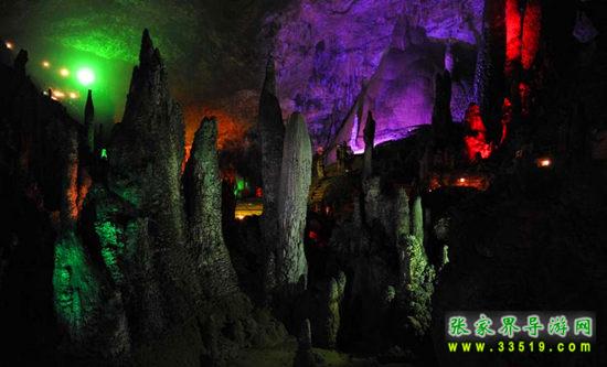 九天洞位于湖南張家界市桑植縣城17公里的利福塔鄉(xiāng),距市區(qū)70公里,距武陵源62公里,因洞內(nèi)有九個自然天窗九天洞而得名,總面積250公頃,是中國目前發(fā)現(xiàn)的溶洞之最,比號稱世界第一的利川溶洞大三倍。九天洞內(nèi)空氣清新,冬暖夏凉。整座洞穴分上、中、下三層,有五層不同高度的螺旋式觀景臺,最下層低于地表面400多米。經(jīng)初步探明洞內(nèi)有40個大廳、3條落差懸殊的陰河、12條瀑布、5座自生橋、10余座洞中山,此外,還有不可勝數(shù)的五光十色的鐘乳石群。在眾多迷人的景觀中尤以九星山、玉宮、水晶宮、九天玄女宮、壽星宮五大奇觀最為著名。