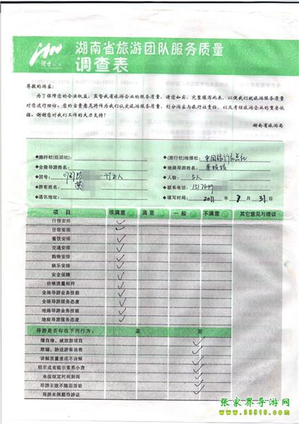2011年7月31日曹小姐一行5人旅游質(zhì)量反饋