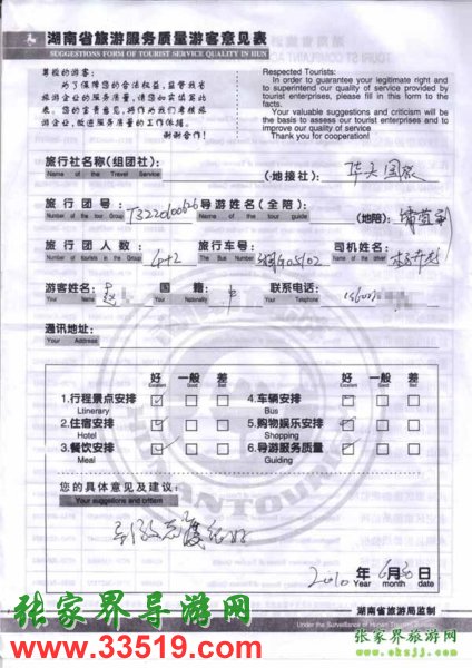2010年6月30內(nèi)蒙趙先生一行4位旅游質(zhì)量反饋